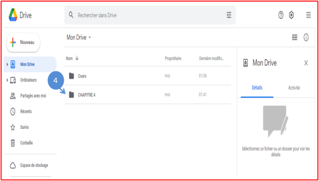 5. Importation du fichier ou dossier dans l'espace « Mon drive ».