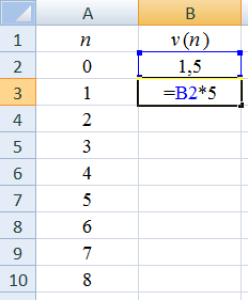 On dispose la feuille de calcul ci-dessous d'un tableur pour déterminer les quelques termes d'une suite géométrique