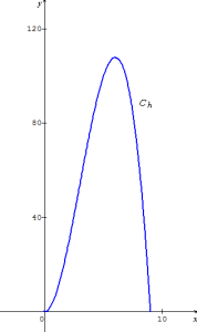 Soit , la fonction est définie sur l'intervalle [0 ; 9] par . La fonction représentée ci-contre donne l'altitude en mètre d'un mini drone au cours du temps exprimé en secondes.
