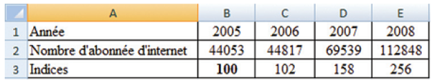 2. Déterminer le taux d'évolution du nombre d'abonnée entre 2006 et 2008.