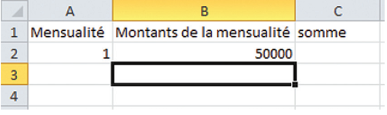 M. Ali veut calculer les montants de ces dix mensualités sur tableur dans cette page de calcul
