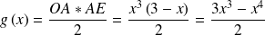 b. Le maximum de g est environ 4,27 atteint pour x = 2,25.