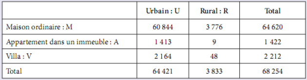 On s'intéresse au type de logement qu'on choisit au hasard. On note les événements par les lettres du tableau.
