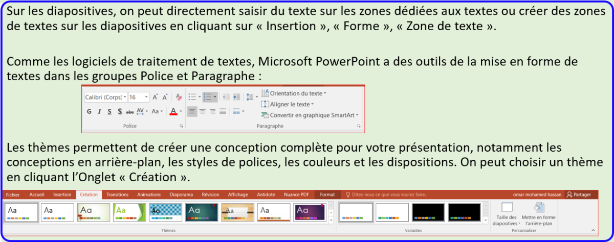 3. L'utilisation des thèmes, la saisie et la mise en forme des textes