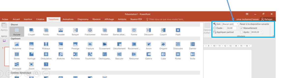 2. Cliquer sur l'onglet Transitions,