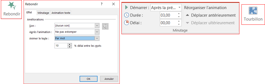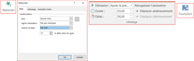 a. Ajouter aux textes des animations qui font rebondir mot par mot chaque texte pendant 3 secondes.
