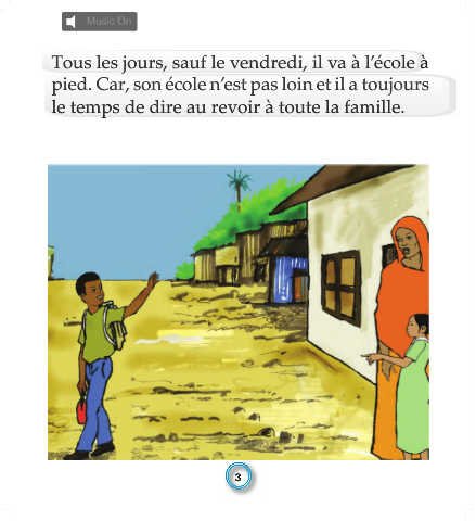 Tous les jours, sauf le vendredi, il va à l’école à pied. Car, son école n’est pas loin et il a toujours le temps de dire au revoir à toute la famille.