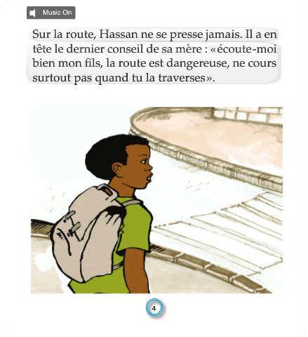 Sur la route, Hassan ne se presse jamais. Il a en tête le dernier conseil de sa mère : « écoute -moi bien mon fils, la route est dangereuse, ne cours surtout pas quand tu la traverses ».