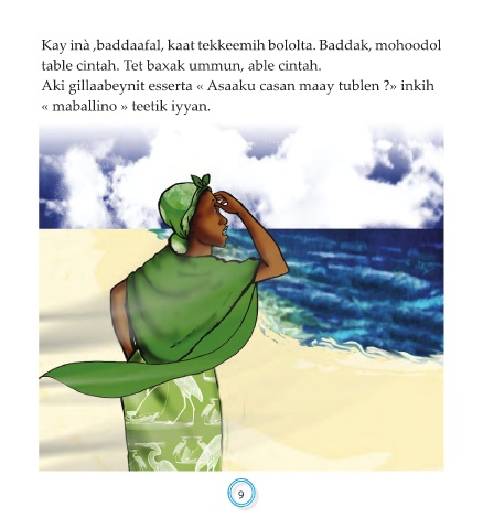Kay inà ,baddaafal, kaat tekkeemih bololta. Baddak, mohoodol table cintah. Tet baxak ummun, able cintah. Aki gillaabeynit esserta « Asaaku casan maay tublen ?» inkih « maballino » teetik iyyan.